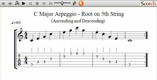 Major Arpeggios - Guitar arpeggios are the notes of a chord played one note at a time. One important reason for learning them is for use in improvisation where a strong chord sound is desired.