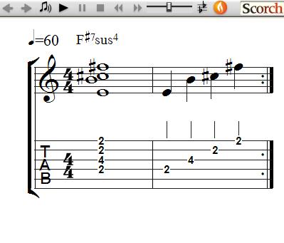 The following exercises use 3 Seven Sus4 chords each and show how to practice learning and changing between chords.