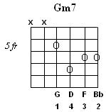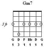 Notice that it is Not the same as the Gm7 chord with the Root off the 6th string and again the 6th & 5th strings aren't played. It doesn't sound as full or powerful as the previous Barre chords though.