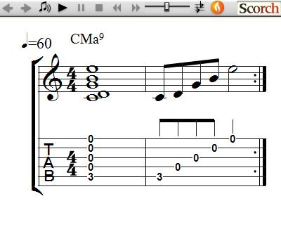 Here are the Ma9 Chord Voicing Lessons, which are another way to play Root Position Ma9 Chords off the 6th, 5th and 4th strings using moveable block form patterns. They are called Voicings since they only use 4 of the 5 notes of a Ma9 chord for a more open sound.