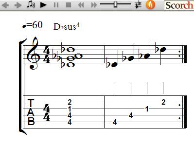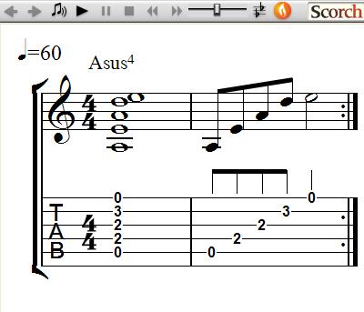 A list of exercises using 3 chords at a time (Dsus4 - Gsus4 - Asus4, Asus4 - Dsus4 - Esus4, Gsus4 - Csus4 - Dsus4 and Csus4 - Fsus4 - Gsus4) are at the bottom of this page.