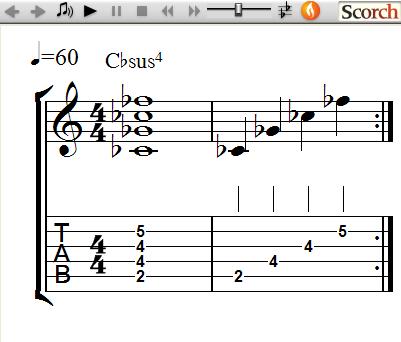 The following exercises use 3 Sus4 chords each and show how to practice learning and changing between chords.