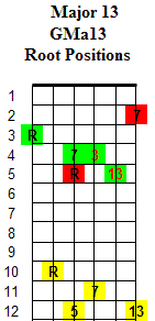 Full Chord Notes = 1 - 3 - 5 - 7 - 9 - 11 - 13