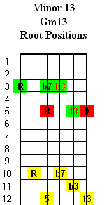 Full Chord Notes = 1 - b3 - 5 - b7 - 9 - 11 - 13