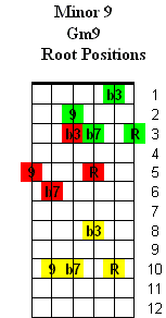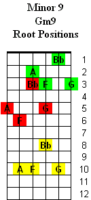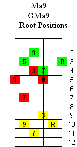 The 9th chords are based on the: 1st (Root) - 3rd - 5th - 7th & 9th(2) notes of a major scale.