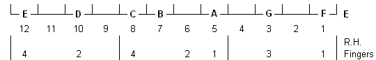 Use the R.H. (Right Hand) fingerings shown below.