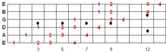 Once you memorize this fingering pattern you can reuse it by moving up or down the fretboard. Whatever note you start on is the 1st note of the scale.