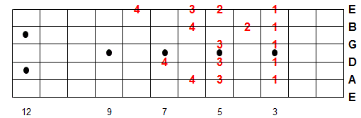 Once you memorize this fingering pattern you can reuse it by moving up or down the fretboard. Whatever note you start on is the 1st note of the scale.