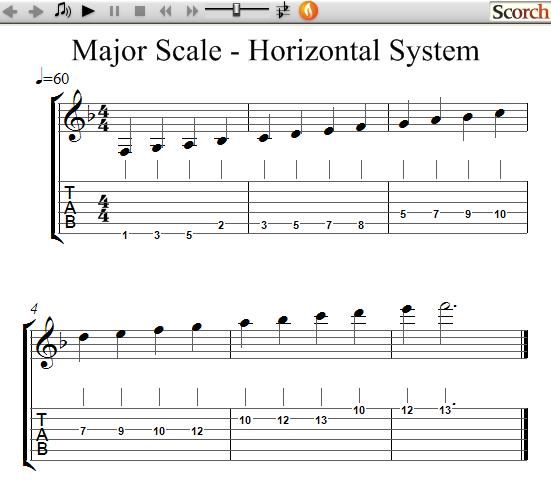 Horizontal System - Uses more of the fretboard to give you a 3 octave range.