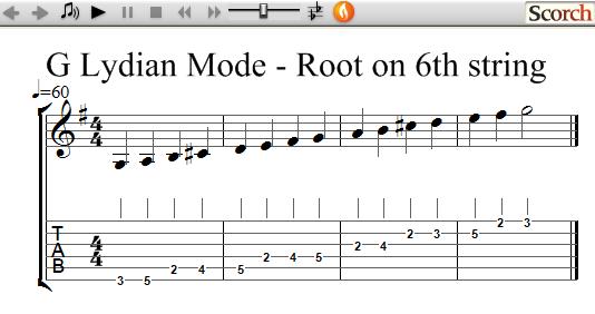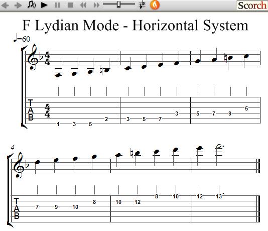 LYDIAN  MODE  (SCALE)  -  LEFT  HANDED