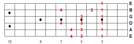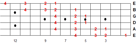 Once you memorize this fingering pattern you can reuse it by moving up or down the fretboard. Whatever note you start on is the 1st note of the scale.