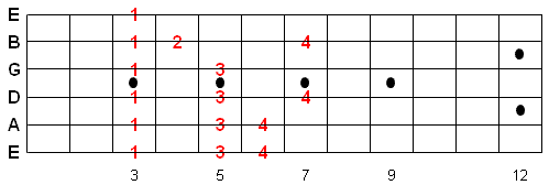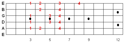 Once you memorize this fingering pattern you can reuse it by moving up or down the fretboard. Whatever note you start on is the 1st note of the scale.
