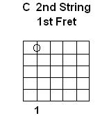The Notes on the 2nd String we will learn to read are B C & D with the Charts for this page created for Left-Handed guitarists. As you can see on these charts, the Note B is played as the 2nd String Open, C is played by holding your Right Hand 1st finger on the 1st Fret while D is played with the Right Hand 3rd finger on the 3rd Fret:
