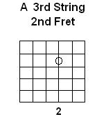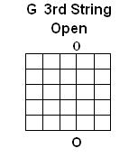The Notes on the 3rd String we will learn to read are G & A with the Charts for this page created for Right-Handed guitarists. As you can see on these charts, the Note G is played as the 3rd String Open, while A is played with the Left Hand 2nd finger on the 2nd Fret: