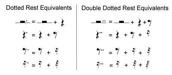 A Second DOT increases the length by one-half (1/2) of the value of the First Dot plus one-half of the Original Note or Rest Value.