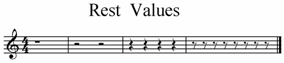 For Rests, Dots are placed in the third (3rd) space of the Staff.